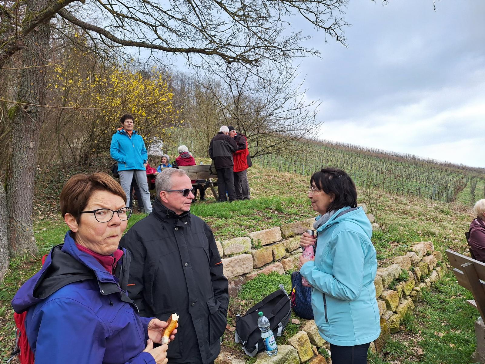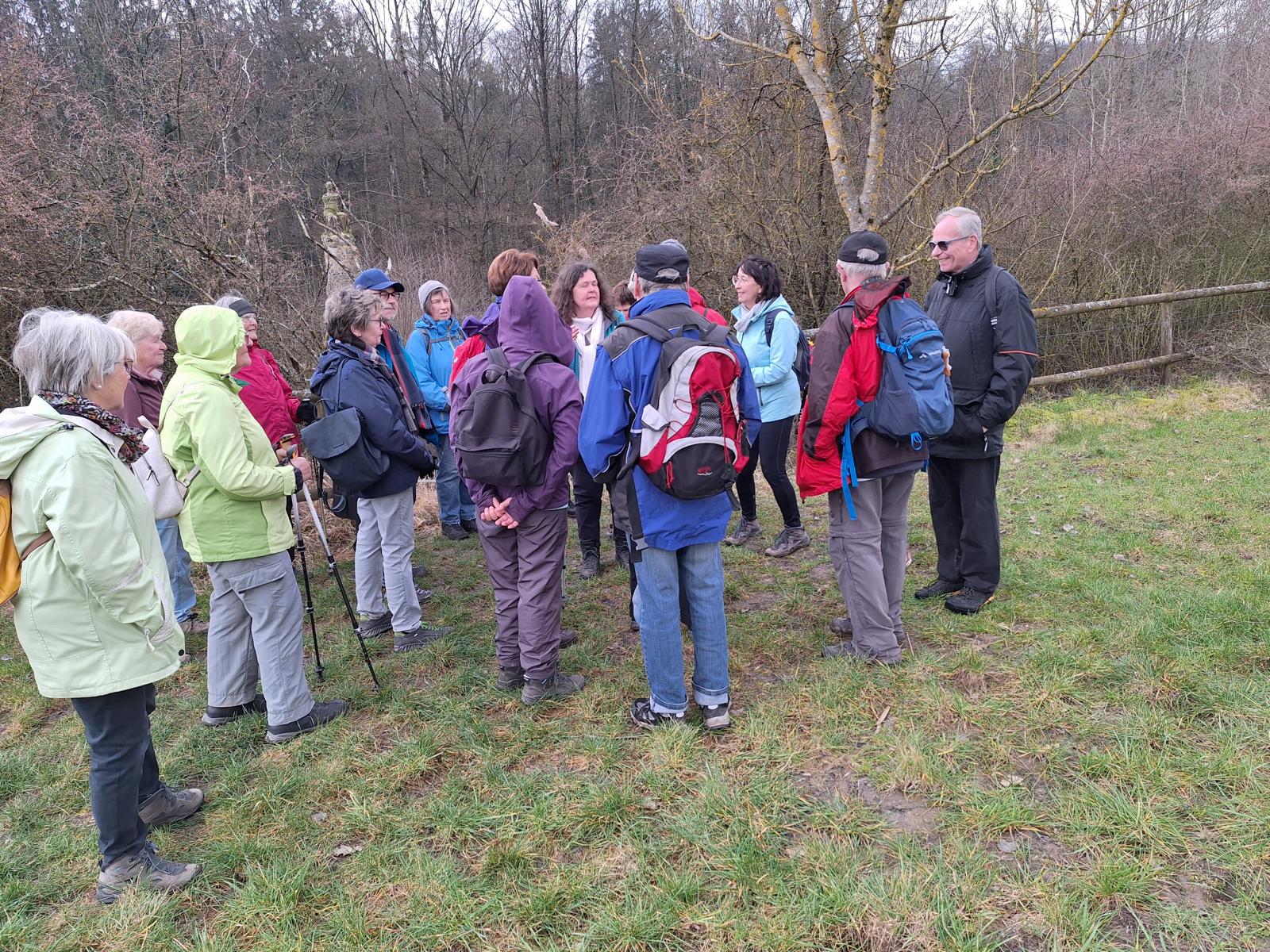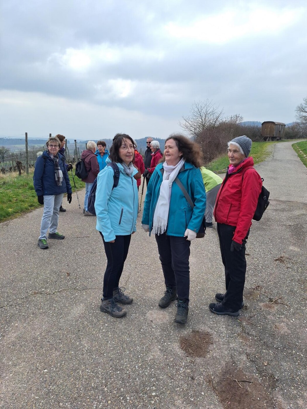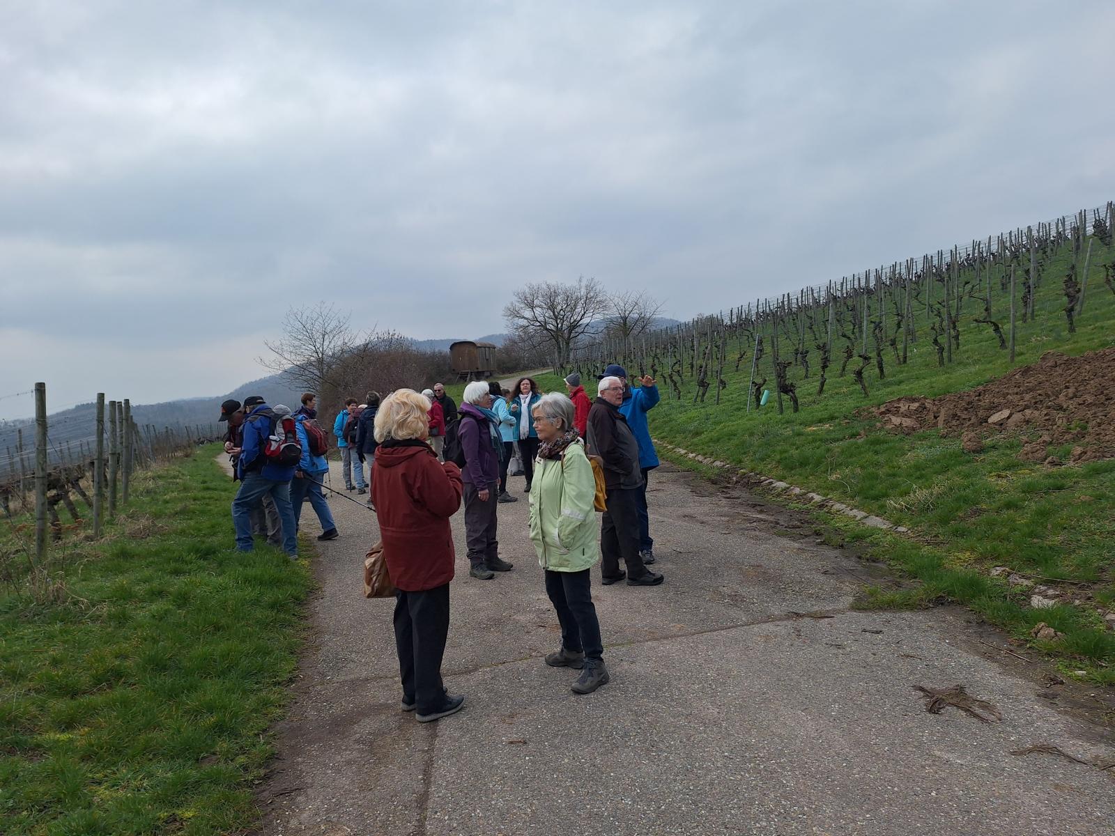 Unter dem Motto „Vorfrühling, Weitblicke, Geschichte und erblühende Natur“ machten sich die Bietigheimer Schwarzwälder, verstärkt durch die Aktiven Senioren, von der Haslicher Bushaltestelle Steige aus auf ihren Weg hinauf zur anno 1767 erbauten Kelter. Weiter ging es, teils auf dem 2019 ausgeschilderten „Weitblickweg“ durch die Haslicher Weinlagen welche sich bis zur Hohen Reute hochziehen.
