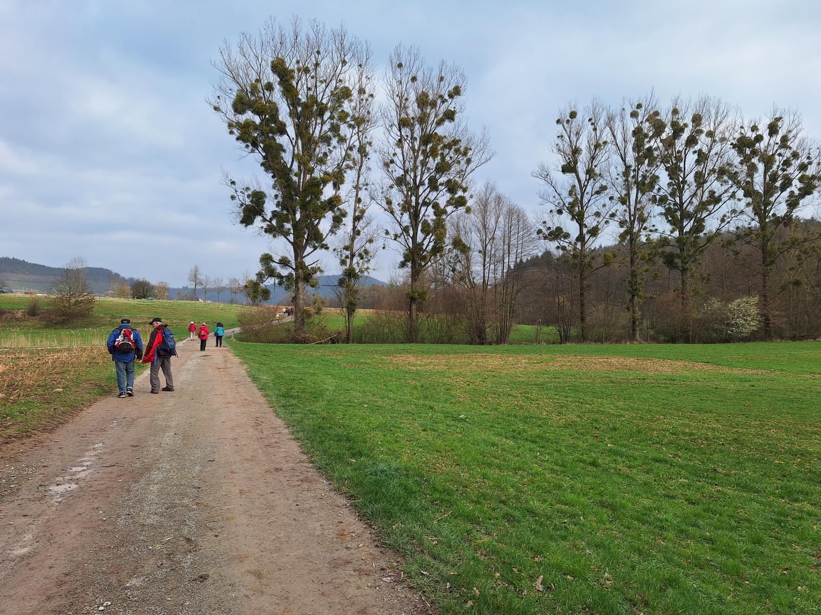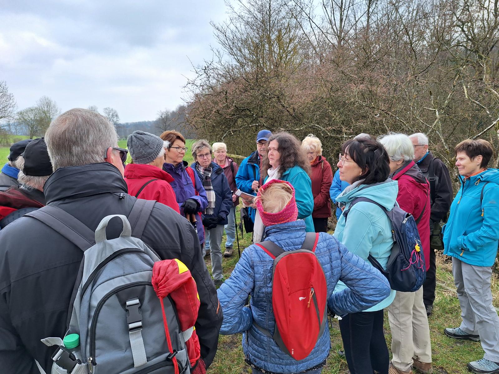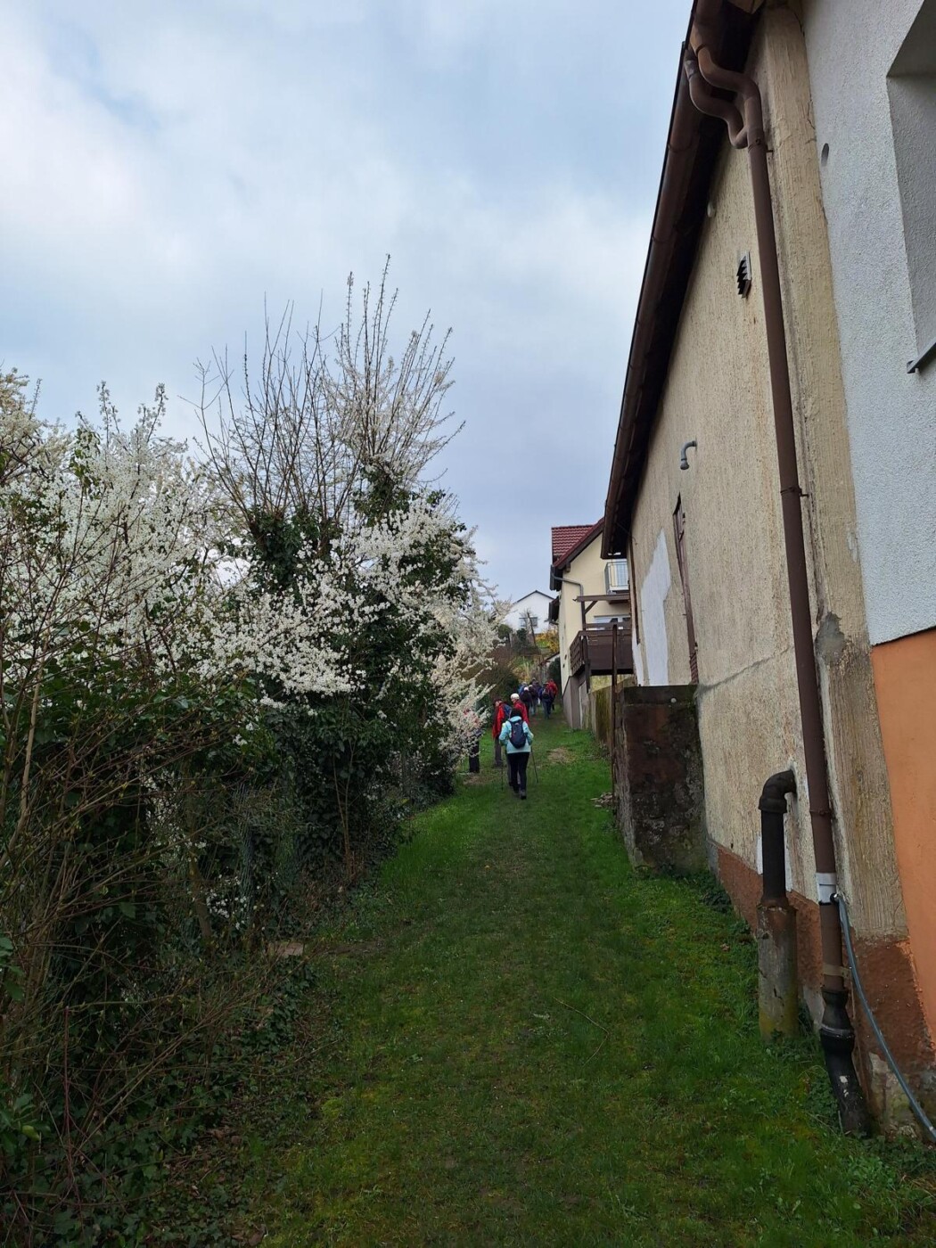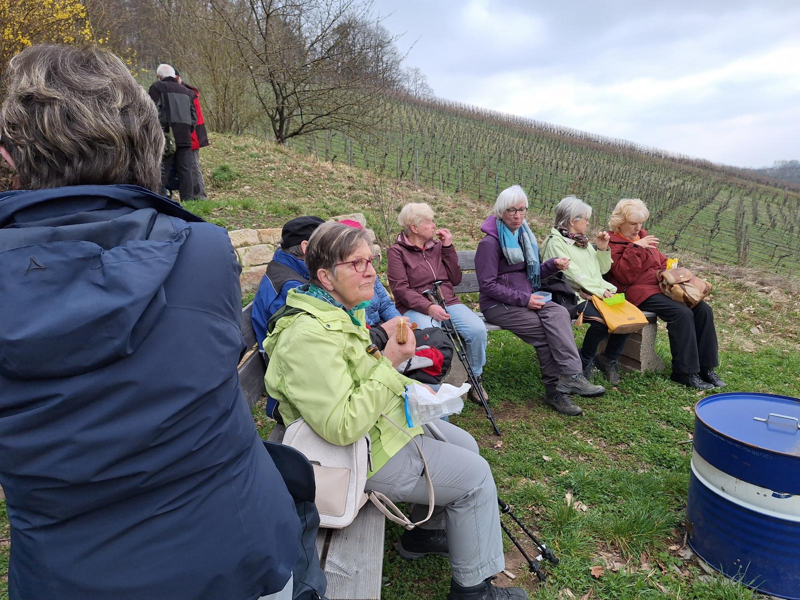 Unter dem Motto „Vorfrühling, Weitblicke, Geschichte und erblühende Natur“ machten sich die Bietigheimer Schwarzwälder, verstärkt durch die Aktiven Senioren, von der Haslicher Bushaltestelle Steige aus auf ihren Weg hinauf zur anno 1767 erbauten Kelter. Weiter ging es, teils auf dem 2019 ausgeschilderten „Weitblickweg“ durch die Haslicher Weinlagen welche sich bis zur Hohen Reute hochziehen.