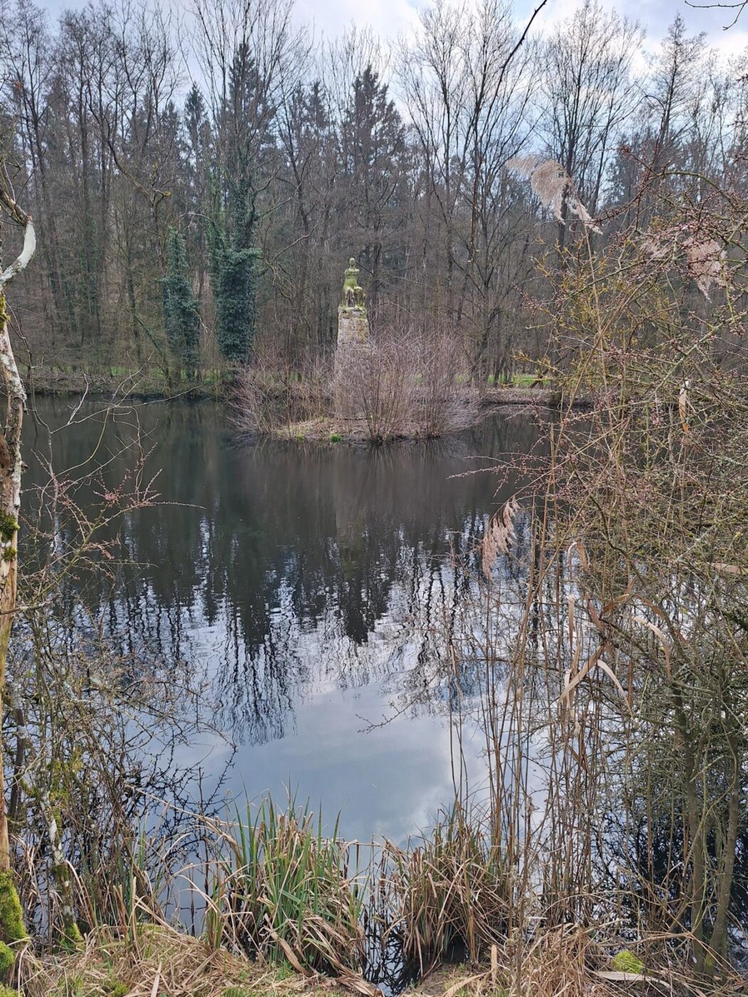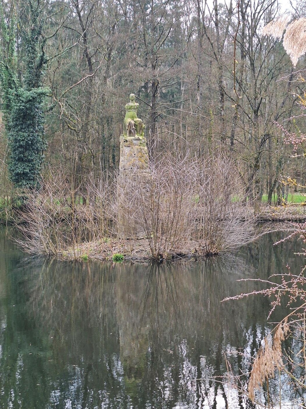 Alles nur noch vergangene Geschichte, von allem nur noch geblieben die alljährlich wiederkehrende Märzenbecherblüte und das einsam im See stehende und von vergangenen Zeiten träumende Kibannele Jagdgöttin Diana, oder Kybele Göttin der Natur.